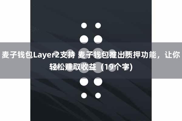麦子钱包Layer2支持 麦子钱包推出质押功能,让你轻松赚取收益 (19个字)